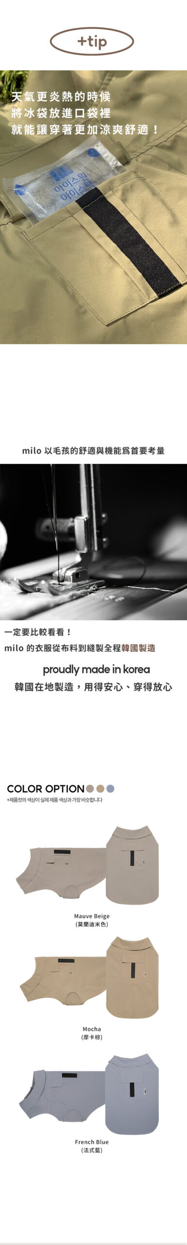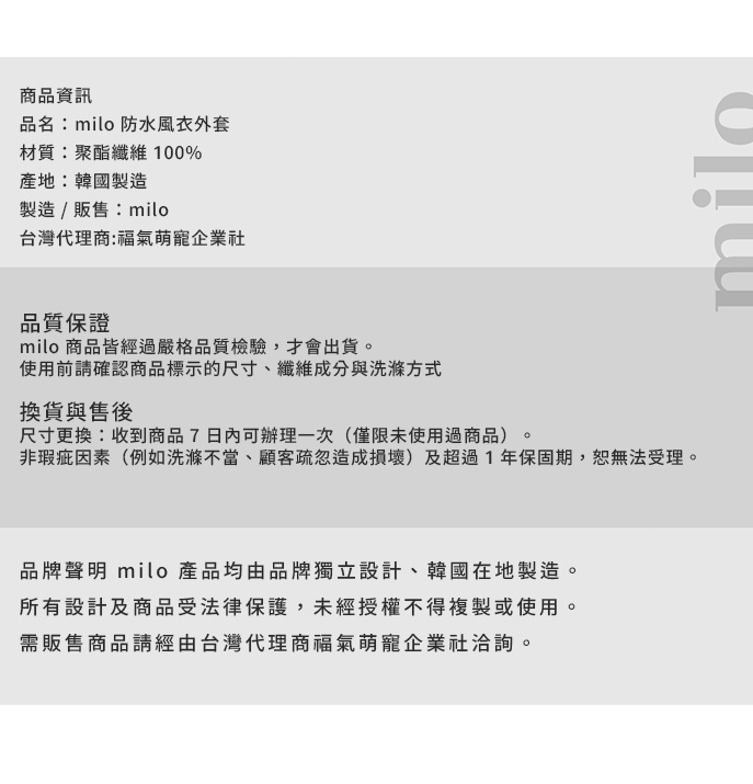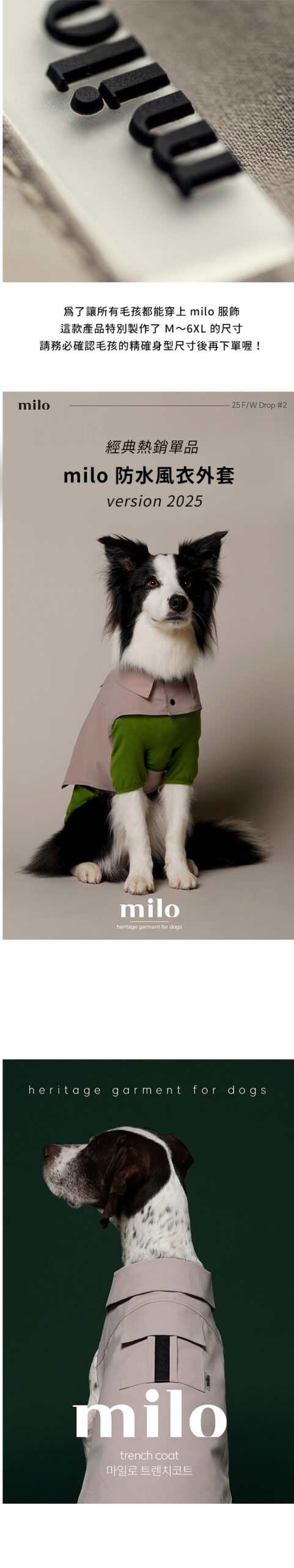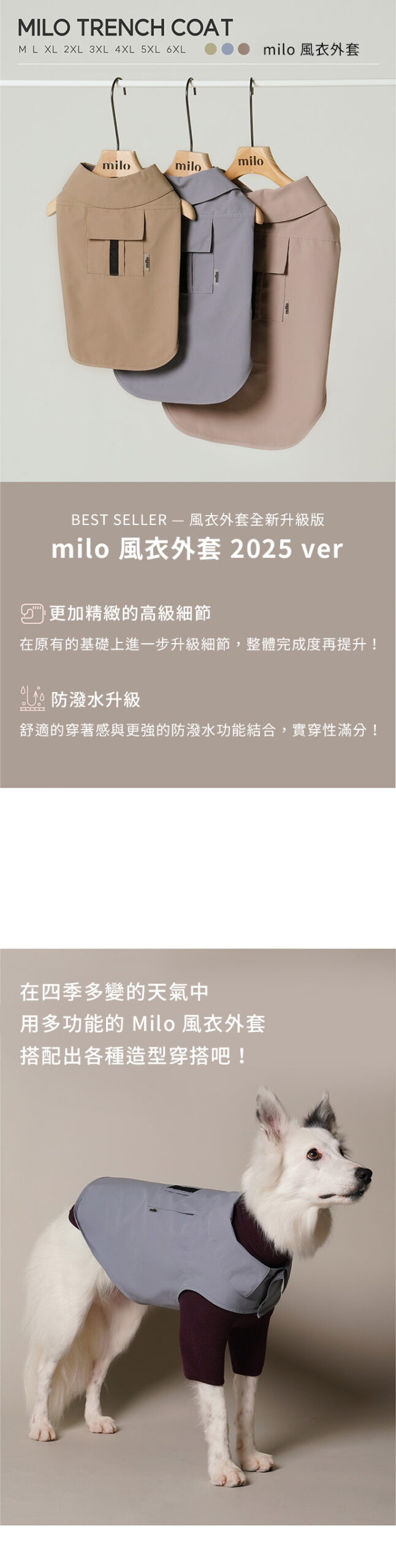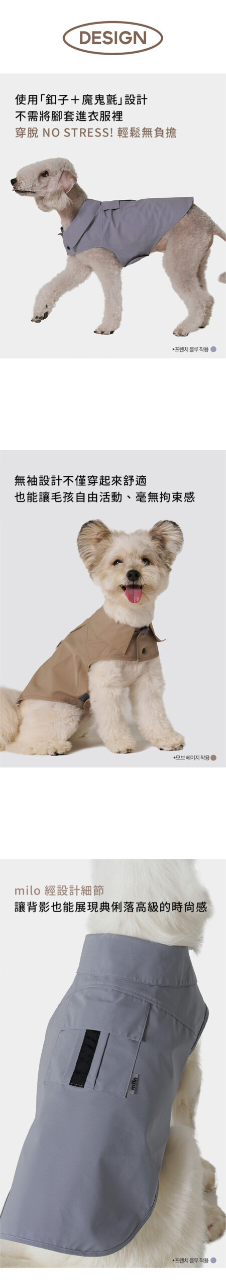 首頁 本月上新 New Arrivals Milo 風衣 Milo 風衣NT$2,800 – NT$3,200價格範圍:NT$2,800 到 NT$3,200 根據不同犬種體型特別調整剪裁,不論胸寬或背長,都能服貼又舒適。寬領造型修飾頸部線條,展現俐落輪廓。 背面立體剪接與隱藏式口袋,讓毛孩從任何角度都散發 低調優雅的時尚氣息。內層設有 胸背帶開孔,即使外穿也能輕鬆扣上牽繩,不影響活動。 ☁️ 防潑水布料 × 精緻手工剪裁不論晴天散步或微雨出行,都能維持舒適與品味兼具的造型。 顏色 請選取一個選項莫蘭迪米色摩卡棕法式藍 尺寸 MLXL2XL3XL4XL5XL6XL請選取一個選項MLXL2XL3XL4XL5XL6XL清除 會員購買此商品可累積11 購物金 Milo 風衣 數量 加入購物車 貨號: 不提供 分類: 本月上新 New Arrivals, 品牌服飾, 所有商品 All Products, 毛孩寓所 Maison de Paw, 犬系生活 品牌: Milo, 精選品牌誌 Curated Brands 願望清單願望清單 描述 額外資訊 顏色 莫蘭迪米色, 摩卡棕, 法式藍 尺寸 M, L, XL, 2XL, 3XL, 4XL, 5XL, 6XL 相關商品 TouTou petcare 毛孩專用沐浴刷 NT$700 Milo 狗狗棒球帽(三色) NT$650 – NT$690價格範圍:NT$650 到 NT$690 (預購)Danbeepet Gentle step兩層階梯 NT$6,250 Tierlieb 動物好朋友 -天然牛磺酸粉|犬貓用心臟保健 NT$680